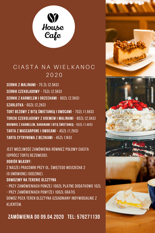 🚙 Odbiór osobisty do godz. 14.00 do soboty 11.04.2020 r. w kawiarni przy ul. Mazurskiej