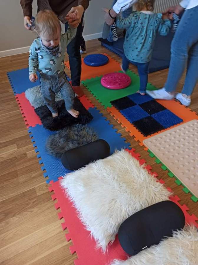 Można w domu zbudować mini tor przeszkód wykorzystując, np. zwinięte koce, krzesła, poduszki, tunele, folie bąbelkowe, miski (przedmioty o różnej fakturze), itp.