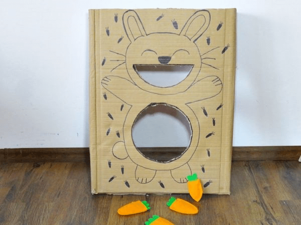 Można połączyć z szukaniem jajek 😉 wtedy jak dziecko znajdzie jakiś przedmiot daje króliczkowi do zjedzenia.