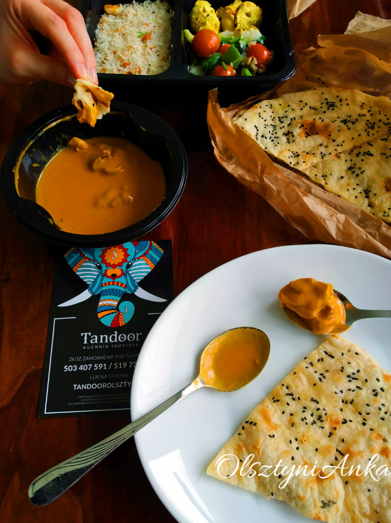 Zamówiliśmy danie festiwalowe Coconut Tikka Chicken, dodatkowo Mango Chicken i naan z czarnuszką 🙂