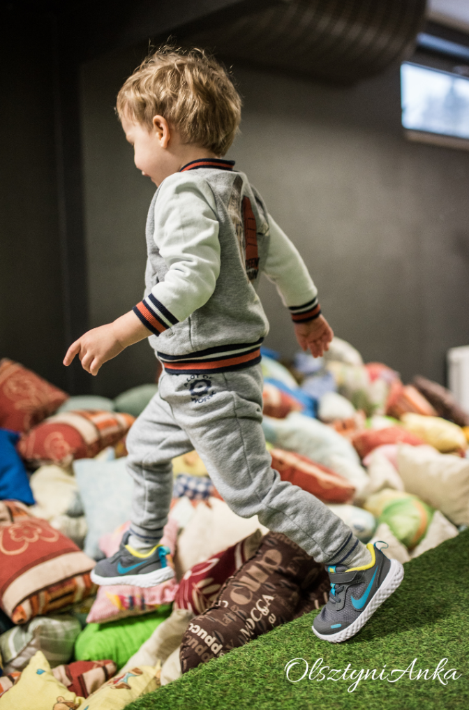 Bacznie obserwowałam mojego testera i stwierdzam, że buty nie ograniczały ruchów: synek z łatwością wchodził na schody, wspinał się na palcach, bawił się kucając, biegał i wskakiwał do „basenu” pełnego poduszek 🙂