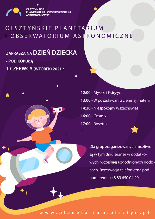 Dzień dziecka w Olsztyńskie Planetarium i Obserwatorium Astronomiczne (dla dzieci do 4 roku życia bilet kosztuje 1 gr)