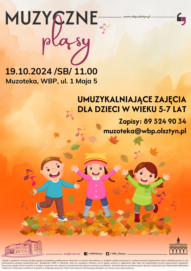 11.00-12.00 Zajęcia umuzykalniające dla dzieci w wieku 5-7 lat w Wojewódzka Biblioteka Publiczna w Olsztynie (zapisy)