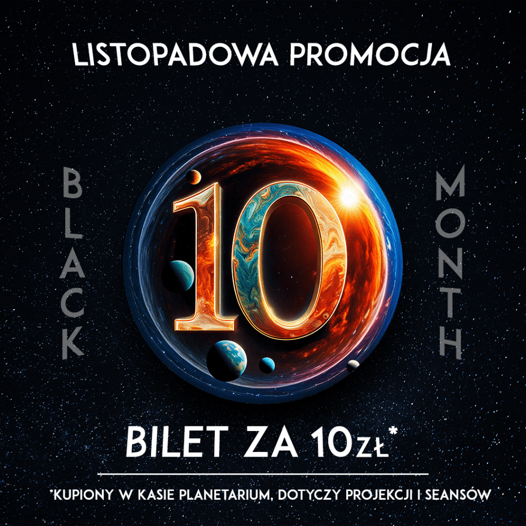 Przez cały listopad macie szansę wejść na nasze seanse i pokazy na żywo za 10 zł– dotyczy wyłącznie zakupu biletów w kasie Planetarium.