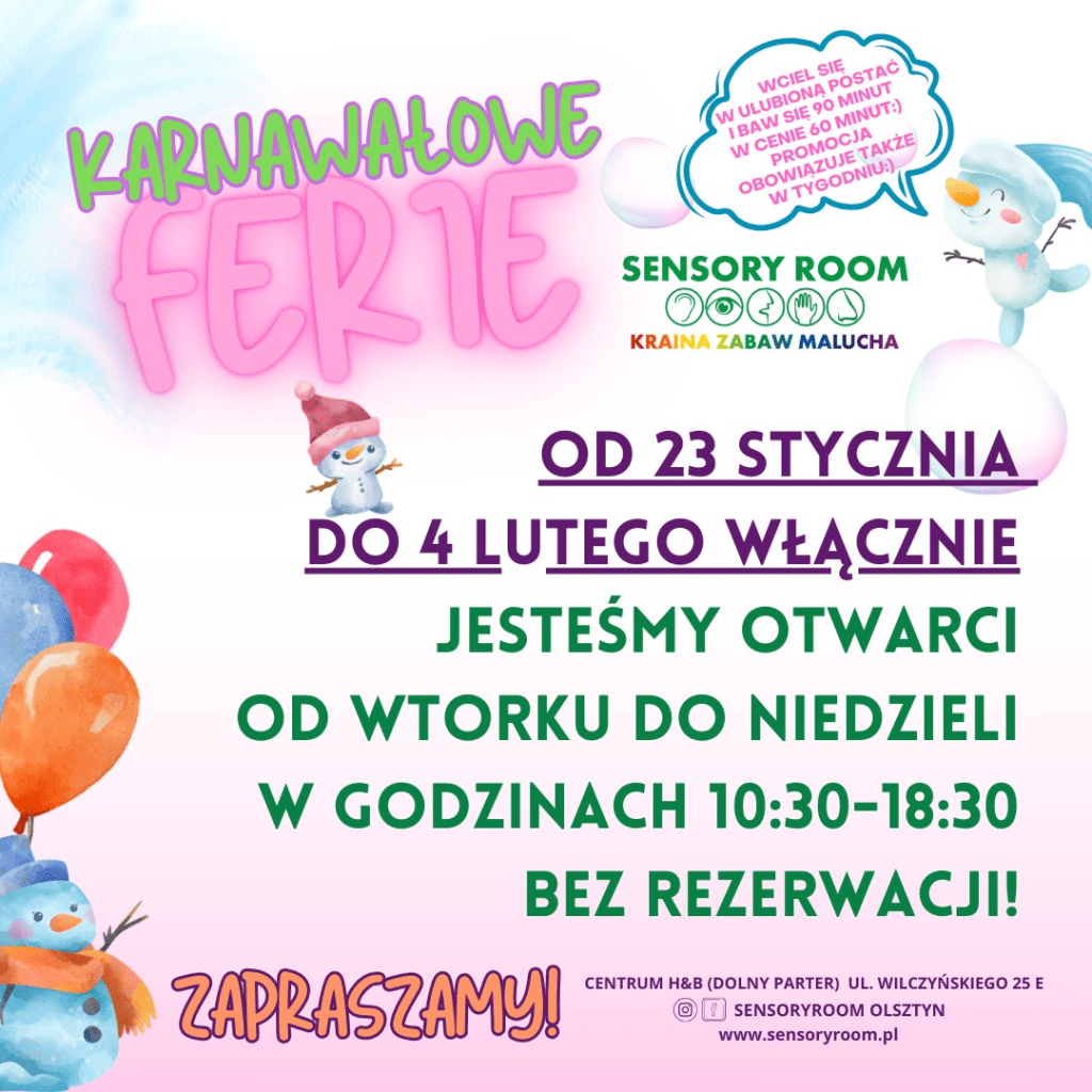 W trakcie ferii (od 22 stycznia do 4 lutego) w olsztyńskiej Aquasferze obowiązują specjalne oferty cenowe dla opiekuna z dzieckiem do lat 18 – rabat w wysokości 50%.