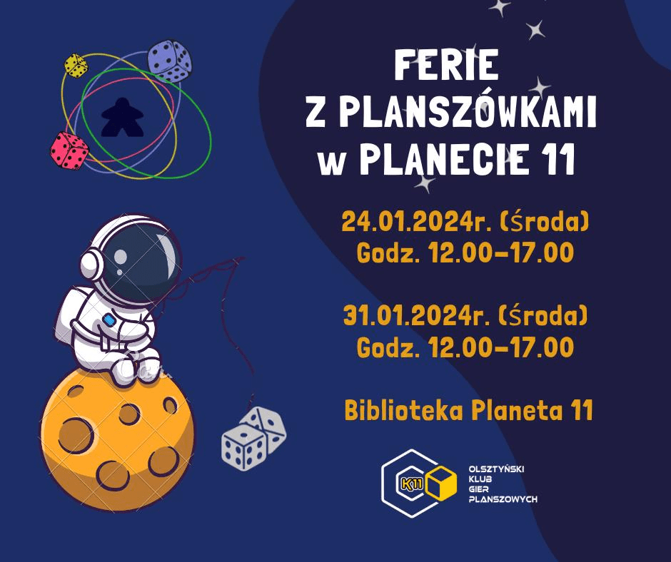 godz. 12.00-17.00 – otwarte spotkanie z planszówkami – dla całych rodzin współorganizator: Olsztyński Klub Gier Planszowych K11;