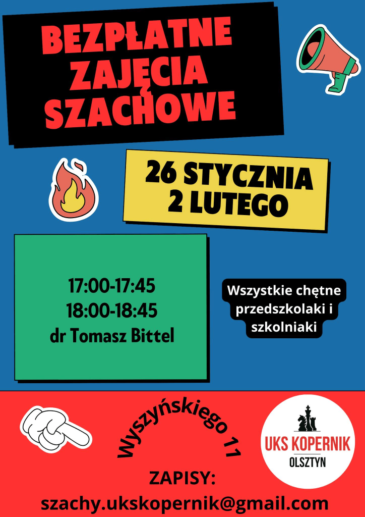 Zapisy: szachy.ukskopernik@gmail.com