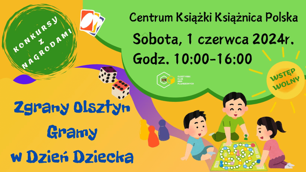 zapraszamy dzieci, młodzież i dorosłych, całe rodziny, na sześć godzin gier i zabaw związanych z planszówkami.