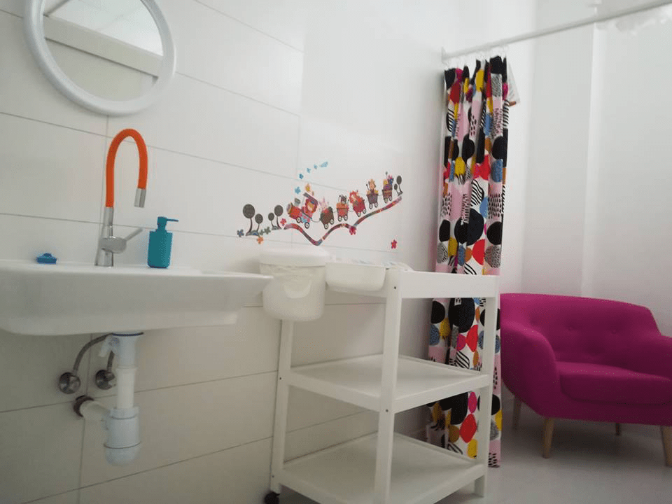 W łazience jest wydzielone pomieszczenie z przewijakiem i fotelem do karmienia 😊