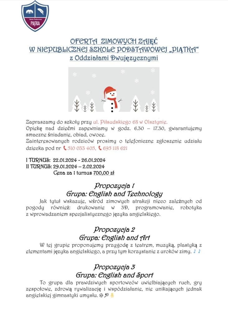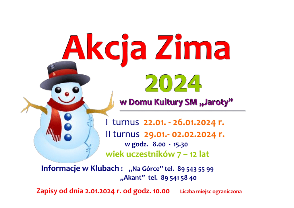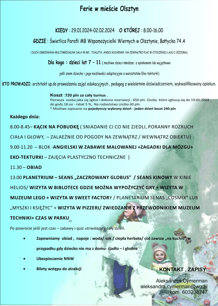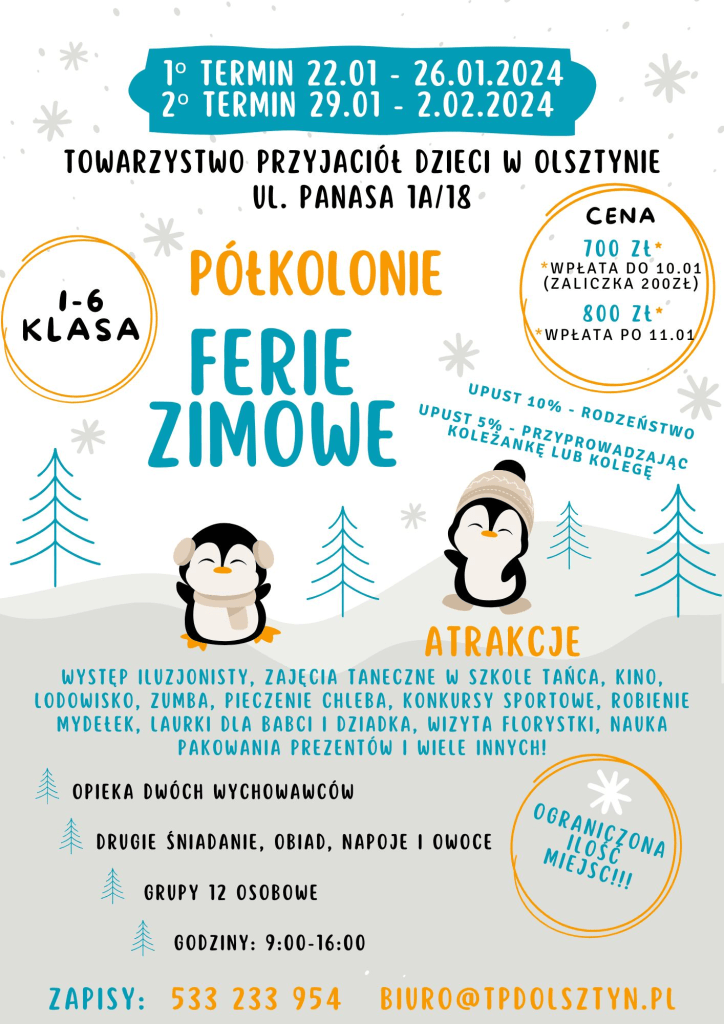 FERIE ZIMOWE 2024: 22.01-04.02.2024 r.