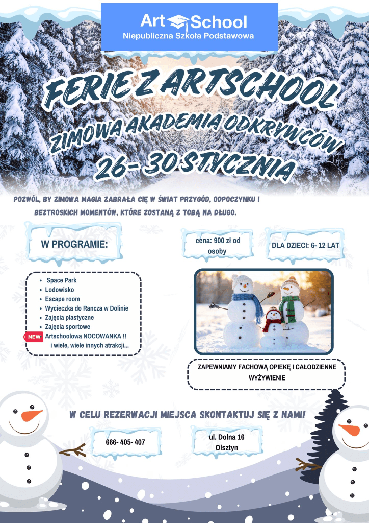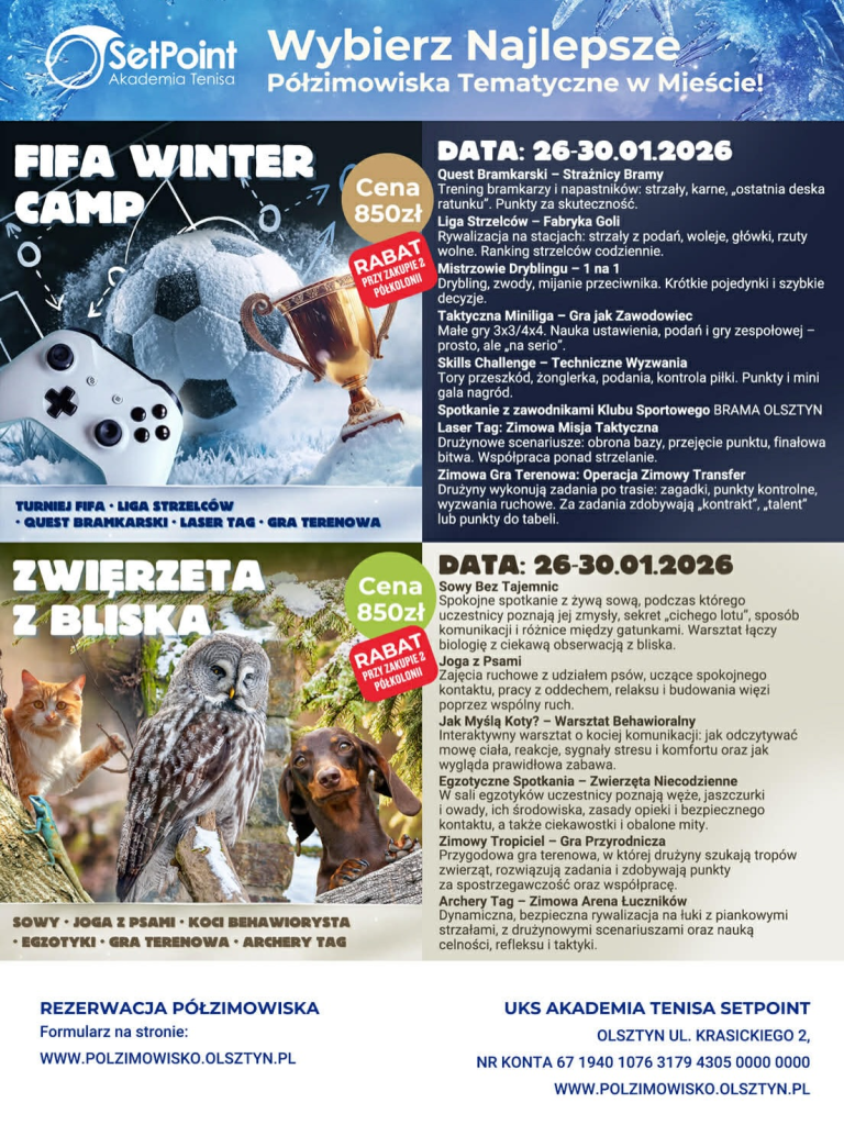Znajdziesz tutaj informacje o miejscach w Olsztynie gdzie organizowane są półzimowiska i warsztaty w Olsztynie i okolicach.